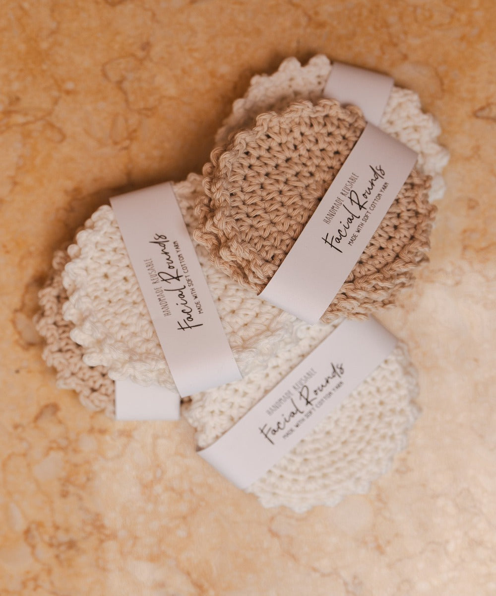 Reusable face cleansing pads aka scrubbies to remove makeup, products & debris from the face. Handmade in Australia by Felicity's mother in law Stella - The Handmade Maiden